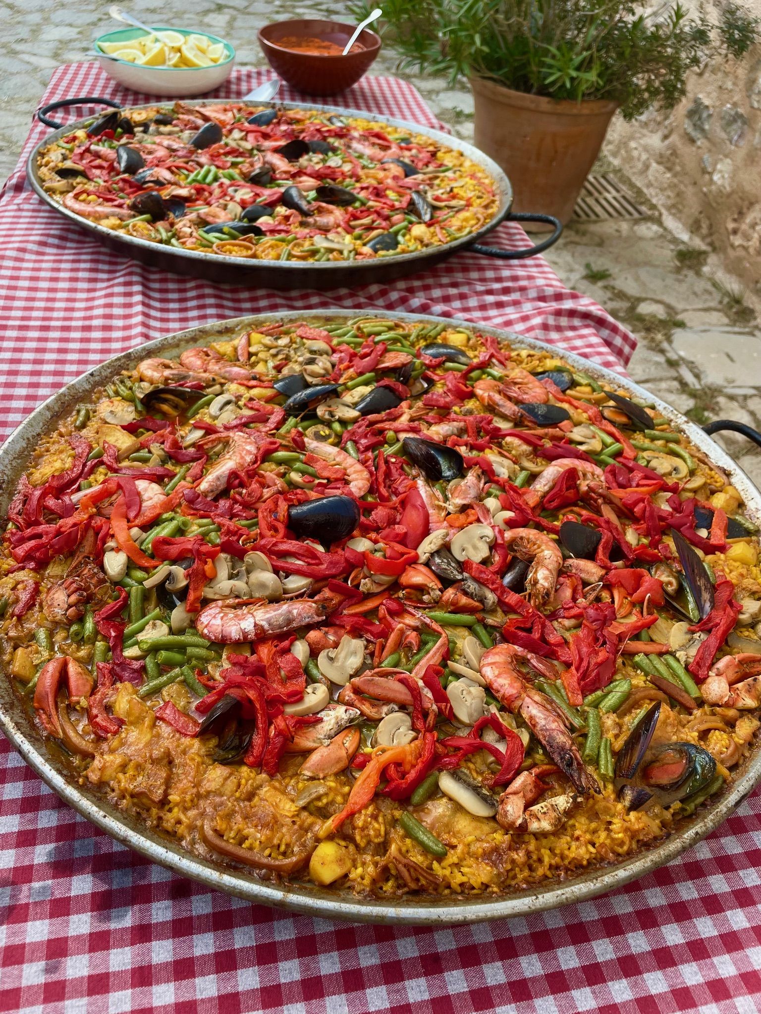 Vi bor på vores to smukke autentiske huse; Fincaen, der er hovedhuset, og Son Pelai, der ligger ca. 3 km derfra. ( læs mere om indkvartering her). På fincaen er der 5-6 mindre køkkener i de lejligheder, som kursister bor i, som vi bruger til vores madlavning, og hvor grupperne arbejder. Vi laver nye grupper efter første madskoledag.