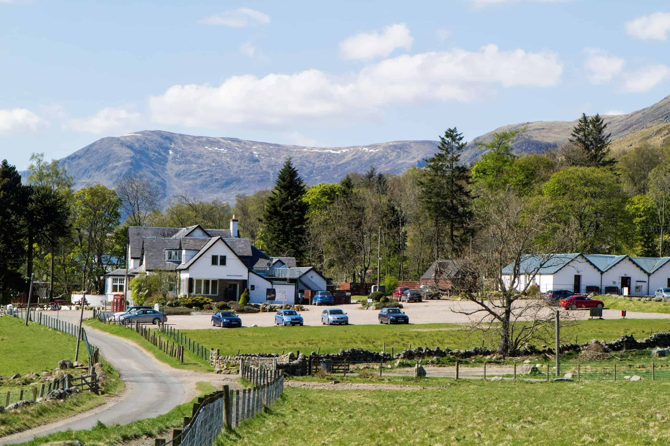 På retreatet bor vi på Hotel Glen Clova i det skotske højland. Hotellet ligger i dalen Glen Clova, der er én af de fem dale, der samlet kaldes The Angus Glens beliggende i den østlige del af Cairngorms Nationalpark. Hotellet ligger for sig selv med ½ times kørsel til nærmeste lille by Kirriemuir. Hotellet er i familieeje, og familien ejer ligeledes et større stykke land omkring hotellet, og holder får. Vi har ofte hotellet for os selv i ugens løb, og der er have med græsplæne, borde og bænke, samt marker og bakker omkring at slappe i, stier at gå ture på, og stedet egner sig fortrinligt til at få pulsen ned på et retreat i naturen.